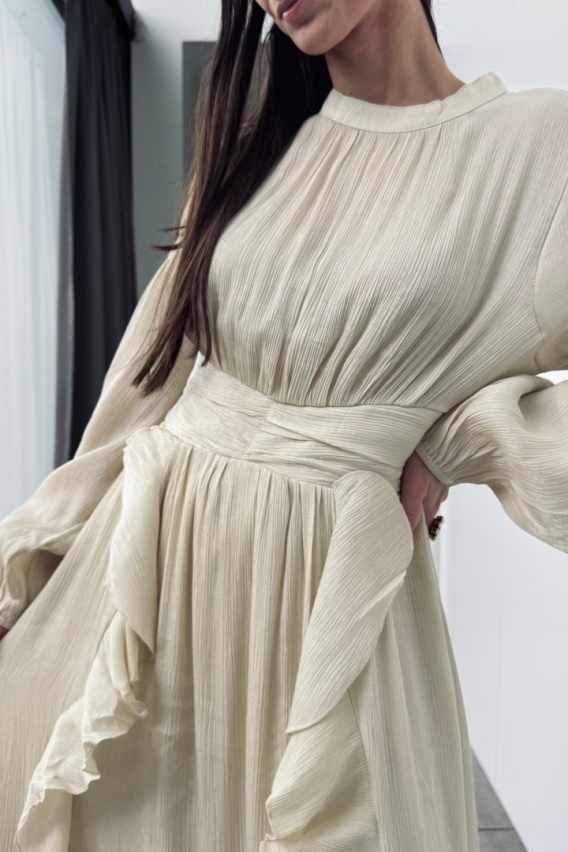 Elegancka sukienka z brokatową nitką | beżowa