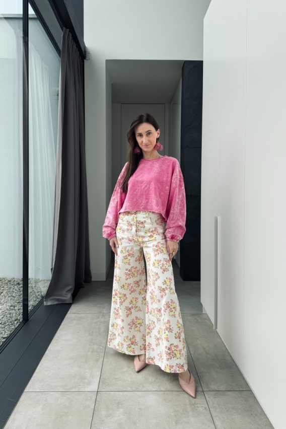 Te spodnie to kwintesencja wiosennej lekkości - szerokie nogawki z florystycznym printem pięknie falują przy każdym kroku i od razu dodają stylizacji świeżości. To model, który wygląda efektownie, a jednocześnie jest zaskakująco wygodny i przyjazny dla sylwetki.