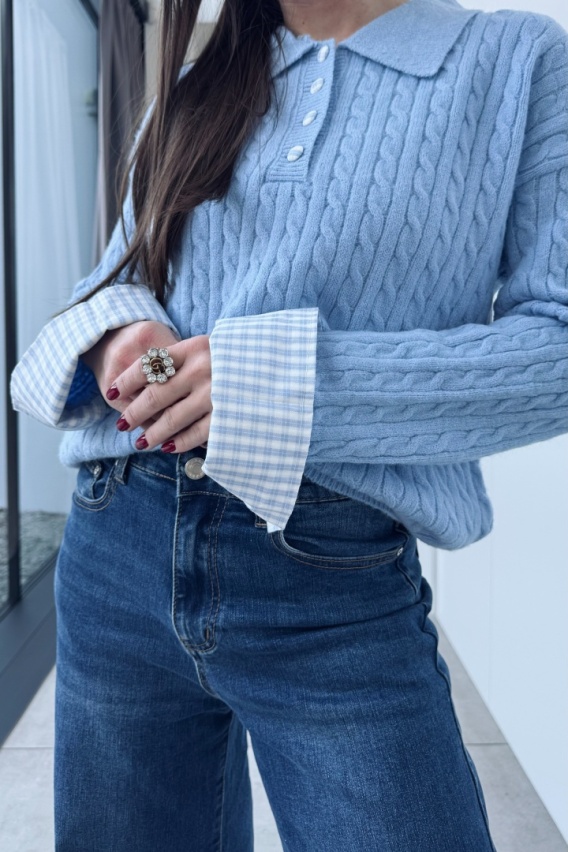 Sweterek z koszulowymi mankietami | wiskoza, poliamid | błękitny