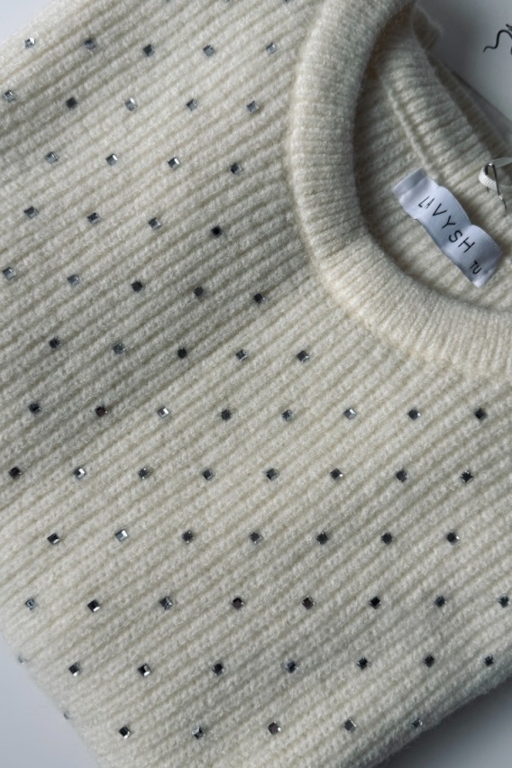 Uroczy sweterek z błyszczącymi kryształkami | kremowy
