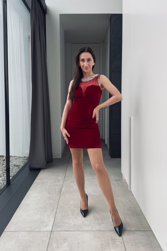 Ta welurowa sukienka w kolorze czerwonym to kwintesencja elegancji i kobiecości! Jej dopasowany krój perfekcyjnie podkreśla atuty sylwetki, sprawiając, że każda kobieta poczuje się w niej pewnie i zmysłowo.