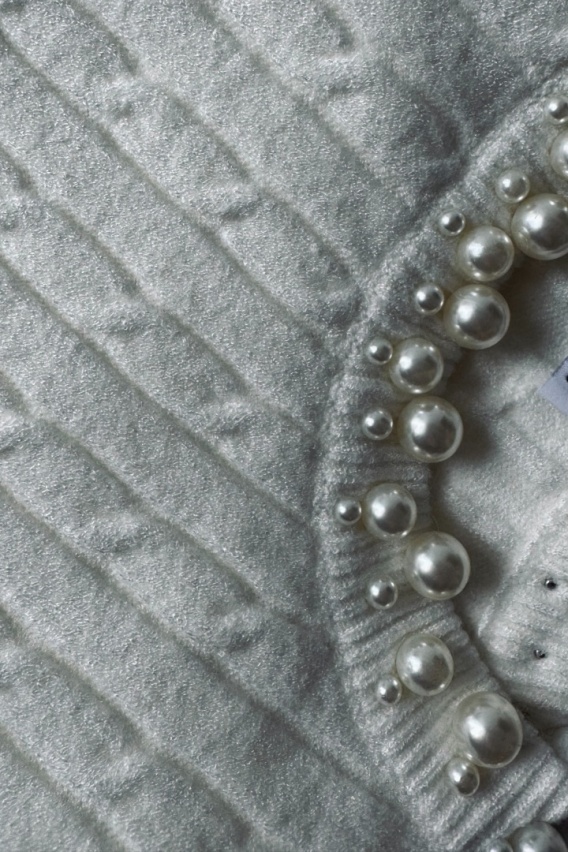Ten sweterek z krótkim rękawem i perełkami, to połączenie delikatności i wyrafinowanego stylu, z efektem wow. Wykonany jest z najlepszych materiałów: wiskozy, kaszmiru i angory. Jest niezwykle miękki i przyjemny w dotyku, dzięki czemu otuli Twoją skórę subtelnym ciepłem w chłodniejsze jesienno - zimowe dni. Ciekawy splot i perełki przy dekolcie dodają mu romantycznego charakteru, tworząc efektowny akcent, który przyciąga spojrzenia. Idealny wybór dla Pań, które cenią sobie wyjątkowe detale i komfort noszenia. Wysoki dodatek spandexu sprawia, że sweterek jest bardzo elastyczny i pasuje do rozmiaru XL.