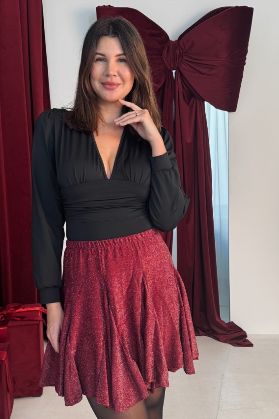 Brokatowe wykończenie sprawia, że ten model jest idealnym wyborem na wieczorne wyjścia i imprezy, dodając stylizacji odrobinę luksusu i przyciągając spojrzenia. Świetnie wygląda zarówno w eleganckich zestawieniach – na przykład z cekinową bluzką lub dopasowanym topem – jak i z ciepłym, mięsistym swetrem, tworząc bardziej casualowy, ale wciąż wyjątkowy look.